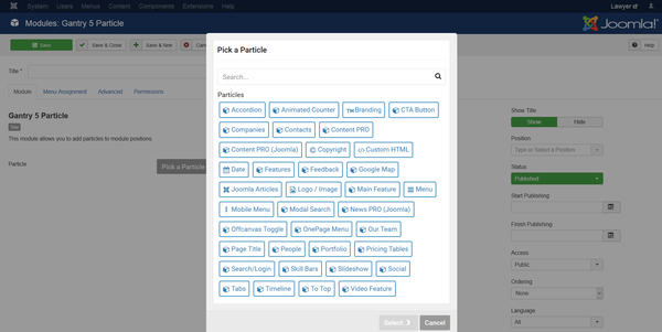 Gantry 5's new Particles system makes it easy to create, configure, and manage content blocks. Create new Particles in minutes, adjust their settings at multiple levels from global down to the individual block, and more!